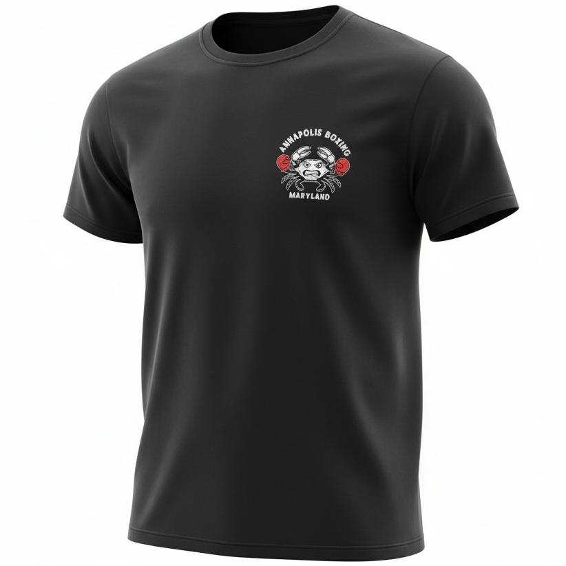 This black Annapolis Boxing tee features our signature angry crab logo — small hit on the chest, full knockout on the back. Soft, breathable, and ready for anything from pad work to post-workout hangs.