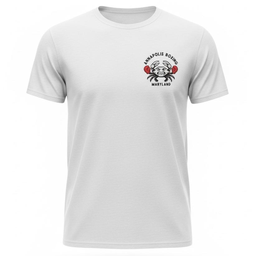 This white Annapolis Boxing tee features our signature angry crab logo — small hit on the chest, full knockout on the back. Soft, breathable, and ready for anything from pad work to post-workout hangs.